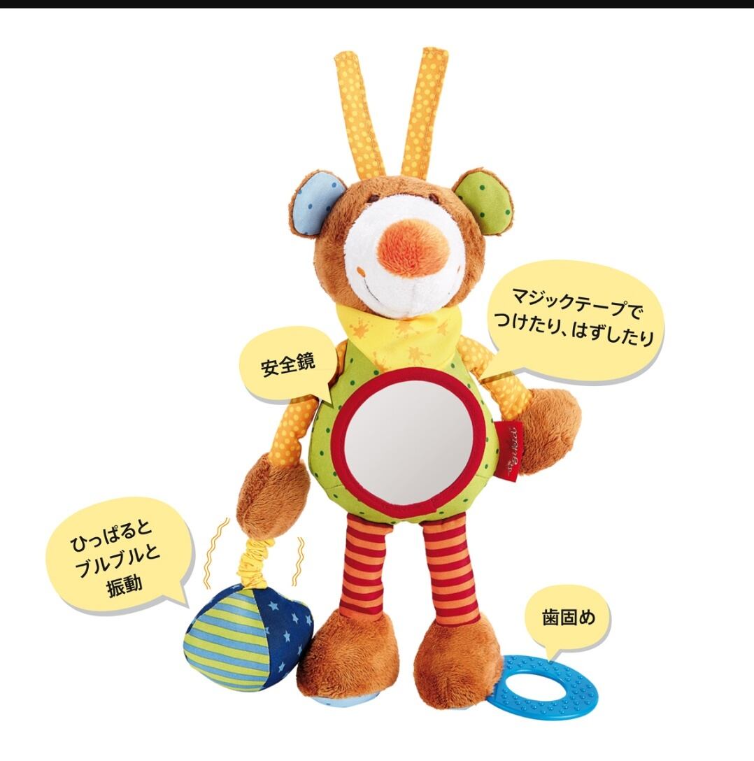 ミラー、歯固め、引っ張るとぶるぶる振動するボールがついていたり赤ちゃんが大好きな仕掛けがたくさん!